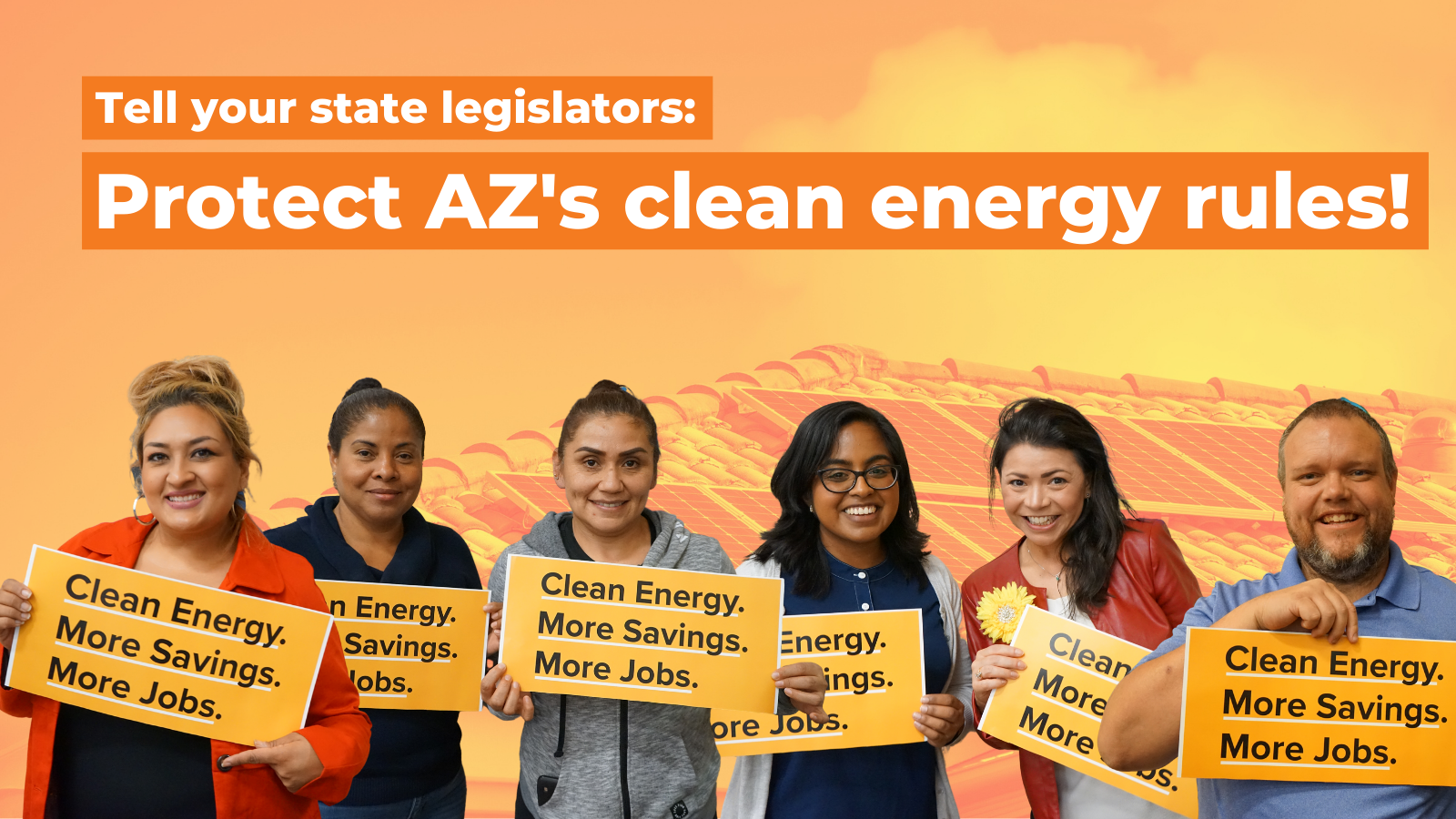This campaign for 100% clean energy rules has been years in the making, with thousands of petitions from Vote Solar members, expert testimony, negotiations and public engagement campaigns. But now, members of the Arizona Legislature are trying to change the rules to prevent the new clean energy standards from moving forward.
